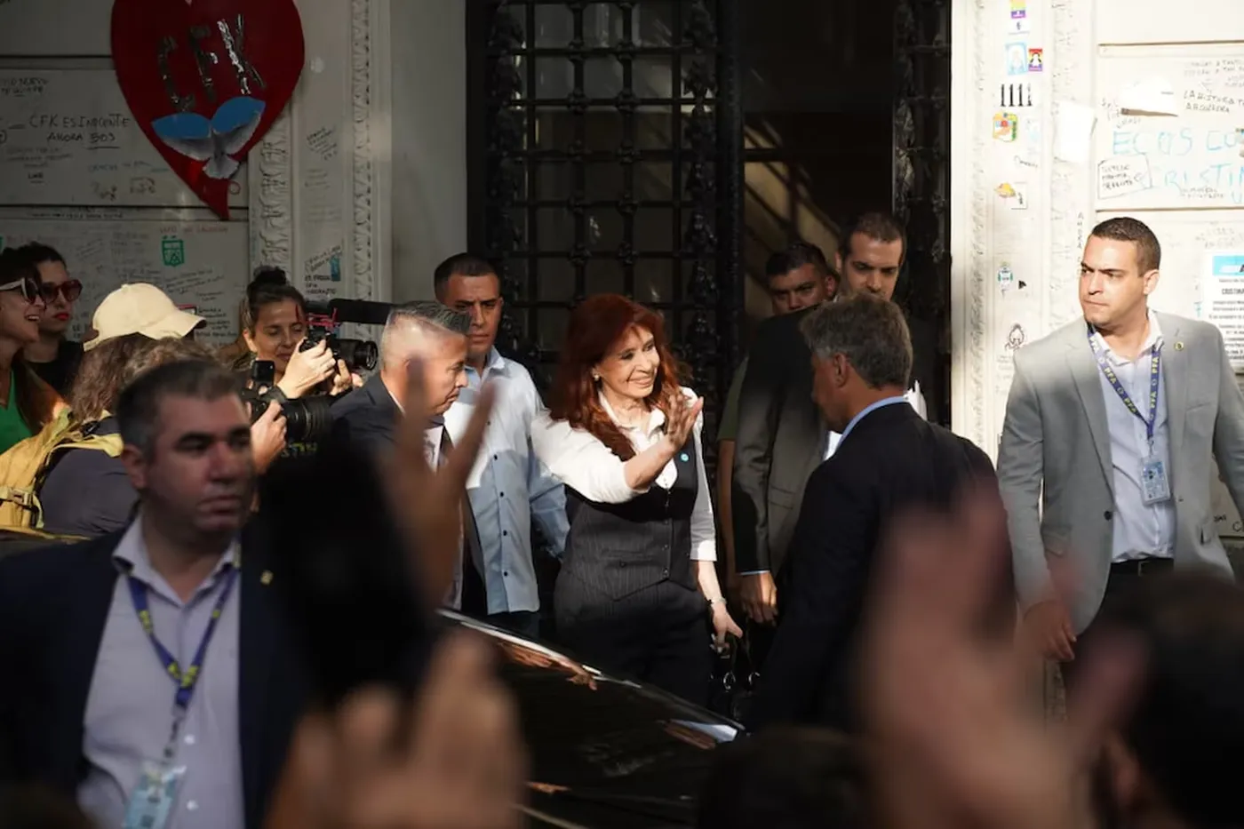 En paralelo, desde las 7 se concentraron en el domicilio de CFK en San José 1111 se concentraron cientos de militantes y seguidores para manifestarle su respaldo y cuestionar al Gobierno nacional, al sostener que el presidente Javier Milei utiliza su condena con prisión domiciliaria “para tapar el desastre” de su gestión.